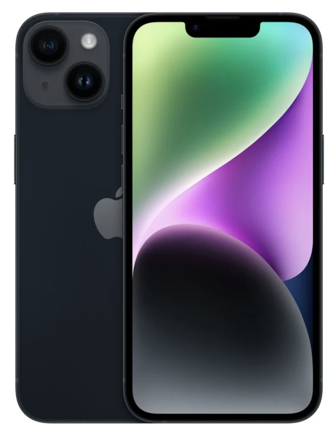 Color Midnight (negro), parte trasera de vidrio y estructura de aluminio, frontal con Ceramic Shield resistente a golpes y caídas.